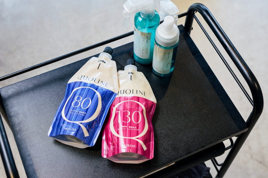 また、シアでは「優しいパーマ」にこだわっています。「クオライン」はダメージに配慮した薬剤で、やわらかな質感に仕上がるので、どんなお客様へもご提案しやすいですね。カットやヘアセットでの操作性が高く、ナチュラルなスタイルがつくれて、デザインやお客様のお悩み解消の可能性も広がります。