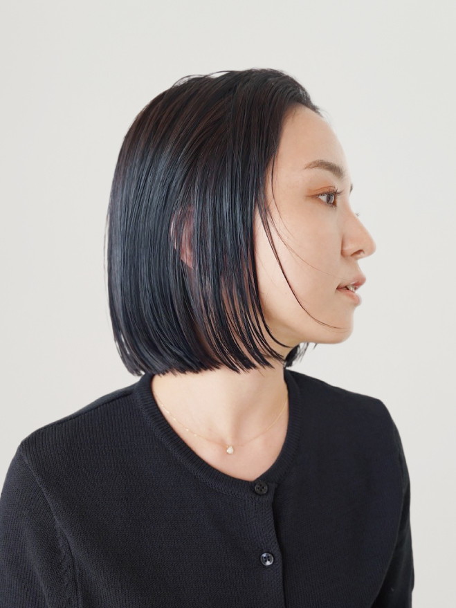 最近、私自身が暗めの髪色にしたこともあってか、担当しているお客様からも暗めのオーダーが多いんです。暗い中でも、ブルーブラックがいいとか、暖色のニュアンスを感じられるようにしながら暗くしたいというご希望をいただきます。そんな時に「ローズ」「アビスカイ」は、ブリーチなしで深みを増して、発色もいいので重宝します。